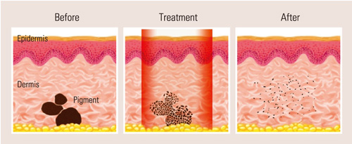 Xóa tàn nhang tận gốcLaser Picosure sử dụng bước sóng 755nm với độ xung cực ngắn tính bằng pico giây (1/1000 tỉ của giây) tạo ra hiệu ứng quang cơ mạnh mẽ, nhắm chính xác vào các mô đích là các túi melanin, phá vỡ toàn bộ mạng lưới hắc sắc tố thành hàng tỉ mảnh siêu nhỏ. Sau đó, các mảnh siêu nhỏ này nhanh chóng bị cơ thể đào thải ra ngoài >> tàn nhang biến mất.